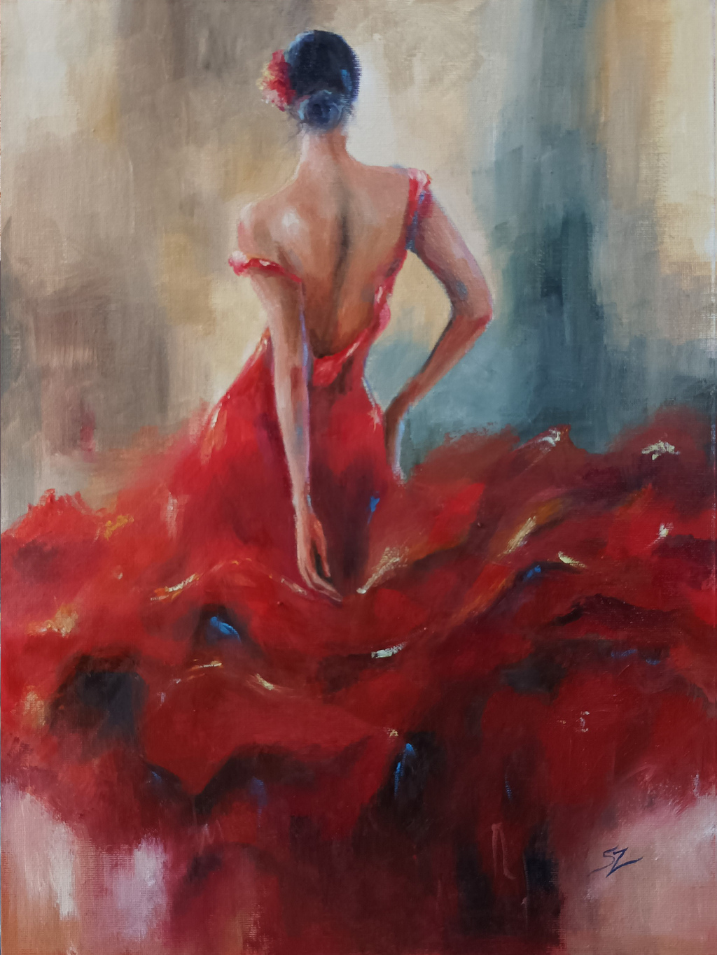 The "Flamenco Dancers" collection by Susana Harris is a captivating series that beautifully captures the essence of a passionate flamenco dancer. The dancers in striking red exudes grace and strength